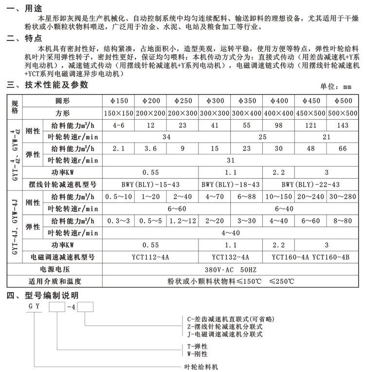 GYT、GYW圓形葉輪給料機(jī)|星形卸灰閥